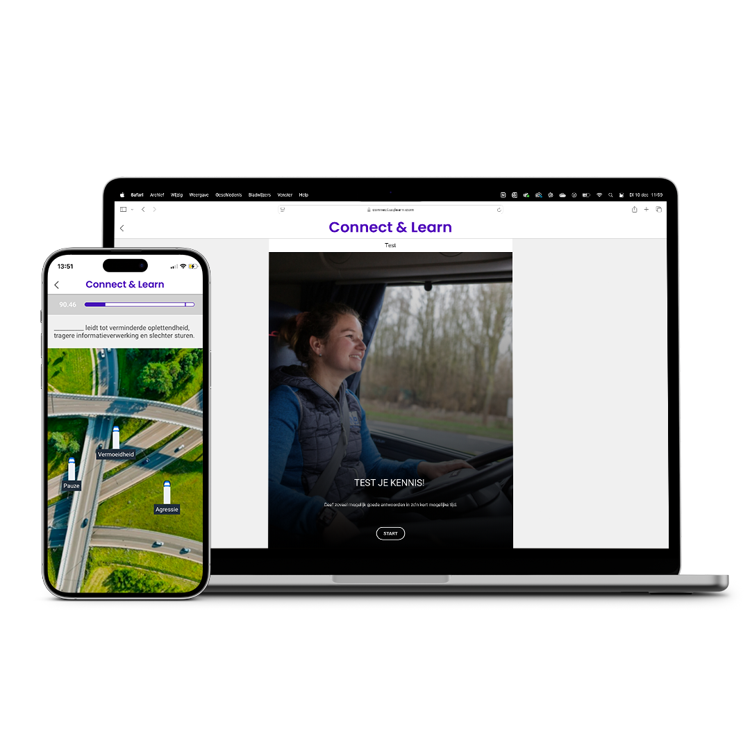 Voordat chauffeurs verder kunnen gaan naar de volgende module, moeten ze verplichte kennischecks uitvoeren. Dit zorgt voor een beter behoud van de verworven leerstof.