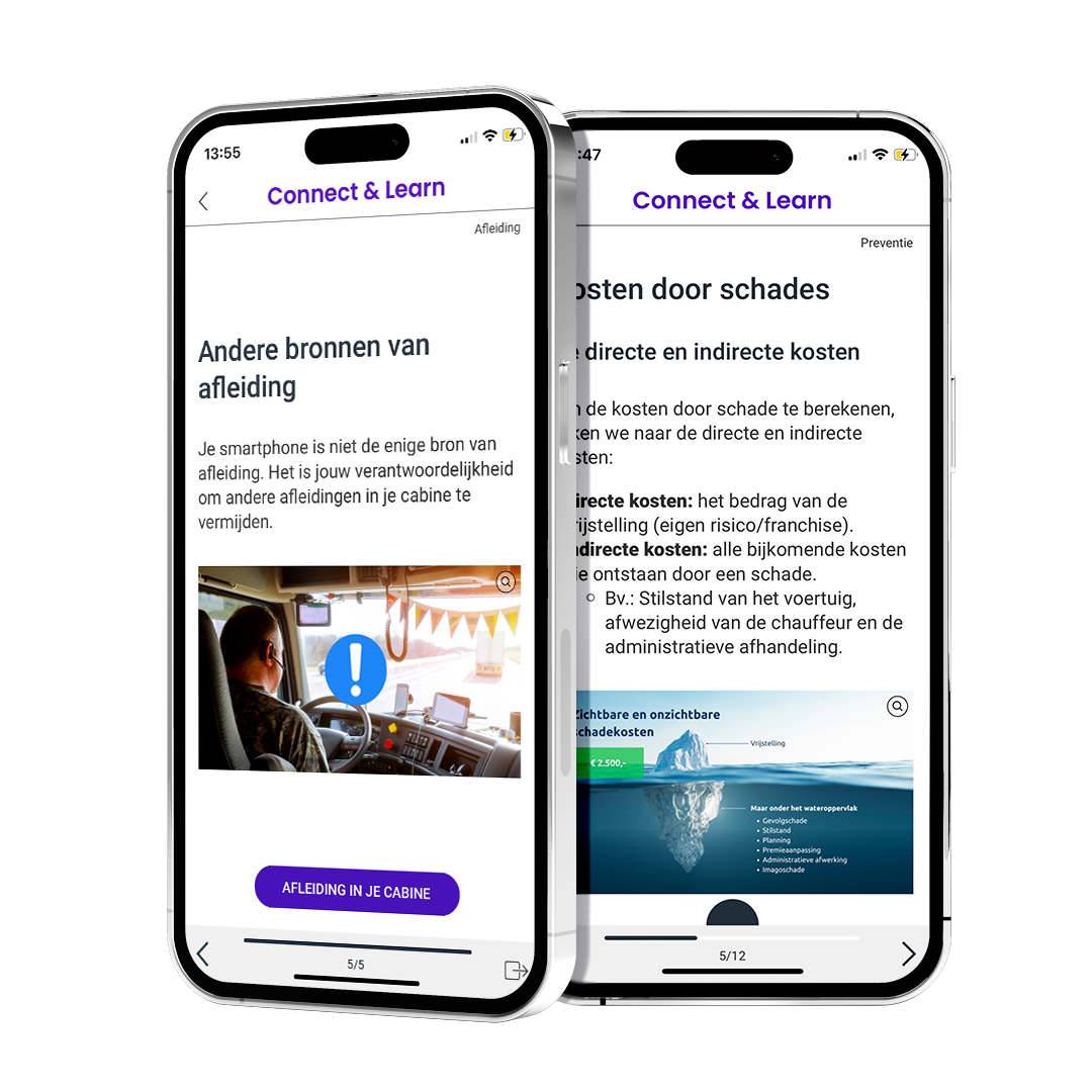 De cursus bevat ingebouwde zelfreflectievragen om inzichten van elke chauffeur te verzamelen. Hiermee kunnen toekomstige werkgerelateerde uitdagingen worden geïdentificeerd en aangepakt.